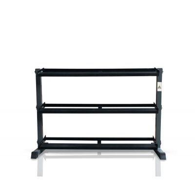 Горизонтальная трехъярусная стойка для хранения гантелей. Подходит для хранения гантелей малых и больших весов. Устойчивы к сколам и царапинам, не подвержены коррозии. Конструкция стойки выполнена из стального овального профиля 50х50 мм толщиной 1,5 мм.