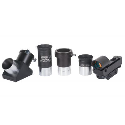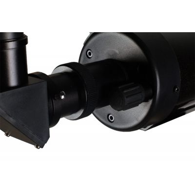 Труба сконструирована по оптической схеме Максутова-Кассегрена – благодаря этому аберрации сведены к минимуму. В комплект входят два окуляра. Начинать наблюдения лучше с окуляра 25 мм – он имеет более широкое поле зрения, так что вы сможете охватить взглядом большее пространство. Второй окуляр – 10 мм – лучше использовать для детального изучения объектов. Труба комплектуется диагональным зеркалом, поэтому вы сможете вести наблюдения из наиболее удобного положения. Для поиска объектов используется искатель с красной точкой.